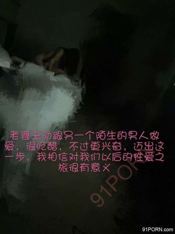 约好之后我们让他先开好房,让他在房间等我们,到了楼下,我故意让老婆先上去,我过10分钟再上去,我说我现在上去他可能紧张,老婆终于忐忐忑忑上去了,那时候我的心里非常激动,也有点吃醋,她终于要迎来第二个男人了,感觉已经硬了,期待已久的事情终于要发生了,那时候真的每过一秒都觉得感觉过了好久,我在楼下坐了10分钟,太煎熬了,然后抱着无比激动的心情上了楼,我在门外偷听,没听到什么,又等了5分钟,我想象着他们已经开始了,我终于敲门了,进去一看,他们还在聊天,并没有开始,有点失落,然后我和那个单男聊了一会,都是些正常的问题,对于他来说,这个年纪玩这个也有些不好意思,终于我忍不住了,我让老婆去洗澡,单男之前就已经洗好了,我想等老婆洗澡,我去洗的时间让他们先开始,老婆终于去洗了,洗了半个多小时,这是我见过的她第一次洗这么长时间,老婆终于洗完了,不过洗完了她还是把衣服穿着的,可能还是害羞吧,老婆洗完出来,我对单男说,你们先开始吧,我把灯全关了,只开了电视,我就去洗澡了,当时我的心里太激动和兴奋了,我把厕所门关上后,已经硬得不行了,前所未有的硬,比第一次和她做还兴奋,我脱光衣服,把水打开,一直想象着他们在做什么,老婆第一次被别的男人征服的反应,我仔细听着他们的动静,刚开始一点声音也没,后来老婆的声音慢慢变大了,在哼哼啊啊,估计单男在给他亲敏感部位,老婆一直非常敏感,何况还是 和陌生的人亲热,我在厕所已经受不了了,自己打起了飞机,那种感觉真的太爽了,很快我就射了,但是还硬着,我又继续打,又射了,射完后,我终于冷静一下,洗完出去了,我已经洗了也快半个小时,出来我看到老婆在跟单男口,还是不戴套的,当时我又硬了起来,我瞟了一下单男的弟弟,比较粉嫩,细长那种,很一般,长度可能比我长点,不过要细一些没开灯,看得不是特别清楚,我故作淡定的坐到了电脑桌前,离他们可能3米,我怕离近了给他们压力,此时我觉得观赏比做爱更刺激,我怕我一直看给他们压力,就打开手机装看直播,声音开得很大,老婆还在口,突然感觉他们在交流什么,然后老婆给单男戴上了套,我想应该要开始了吧,老婆躺了下去,分开腿,单男就开始去插,可是试了一会,好像没进去,我想真是处男吧,然后老婆就起来,让单男躺下,她坐了上去,开始了摆动。