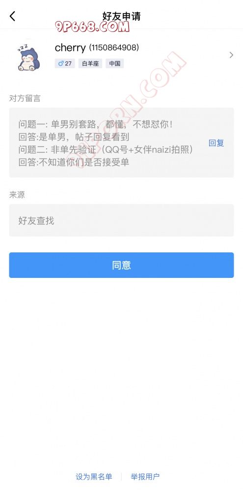 1、昨晚无意当中打开小号来看看老朋友们都有啥动静了,结果无意当中看到有个单男的添加好友的申请,就好意的劝退了一下,结果让人下头的骚操作就来了!